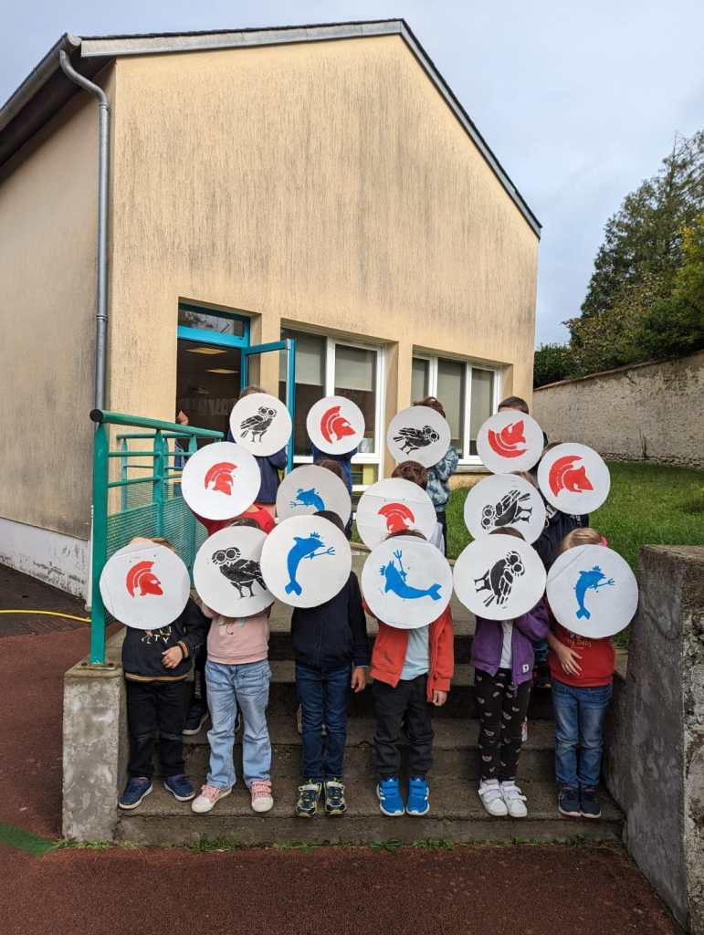 Après une discussion autour de l’origine de nos jeux olympiques, les enfants sont amenés à fabriquer un bouclier grec afin de participer à une épreuve des Jeux Olympiques antiques : la course en armes.