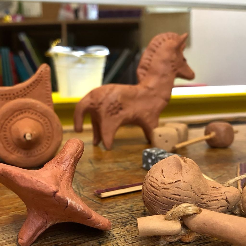 « Est-ce que les enfants dans l’Antiquité avaient des jouets ? » A partir de cette problématique, les élèves s’interrogent sur leurs propres jouets pour découvrir que certains d’entre eux existent depuis plus de 2000 ans. Les enfants sont ensuite amenés à créer eux-mêmes des jouets en argile et à faire quelques parties de mérelle : un jeu de plateau datant de l’Antiquité.
