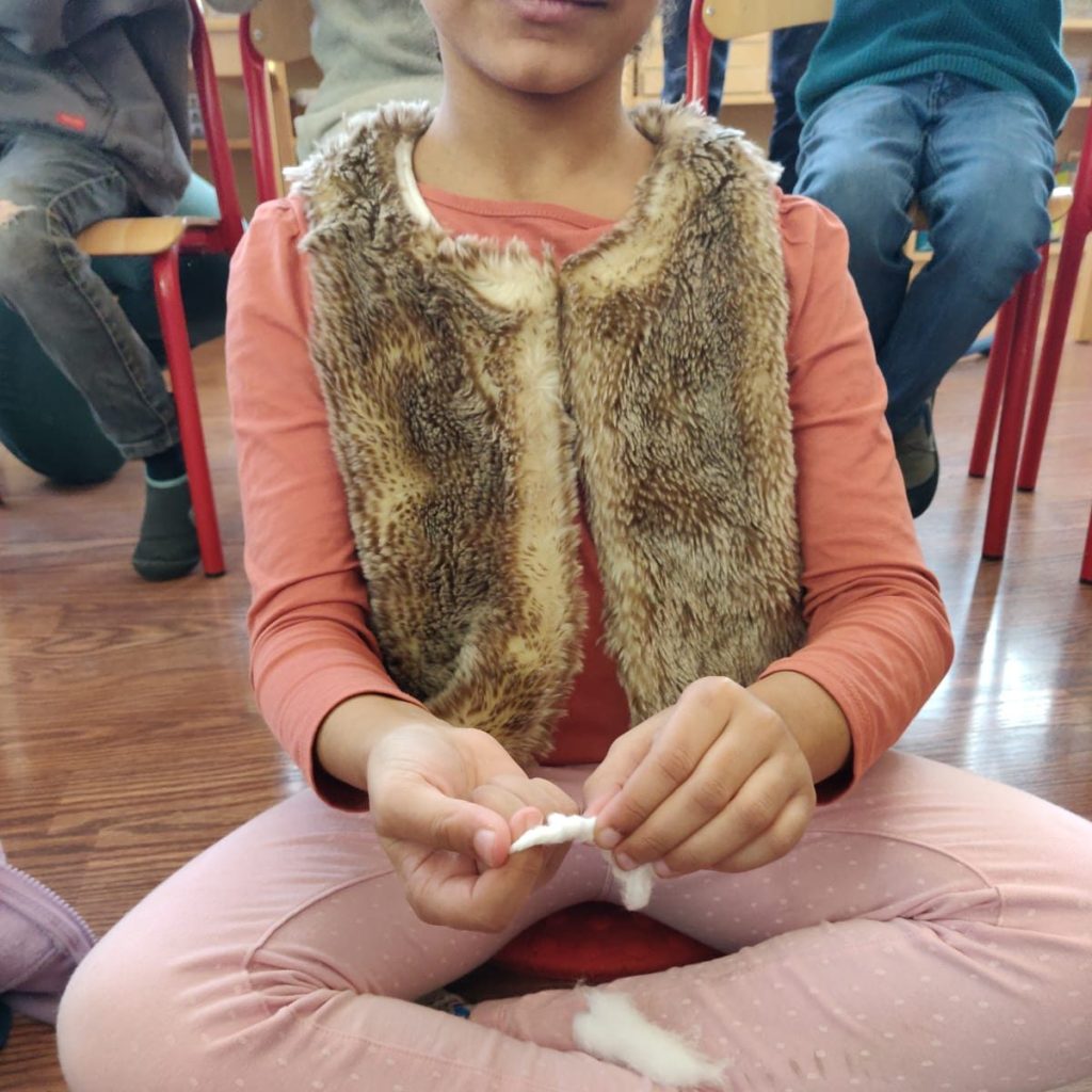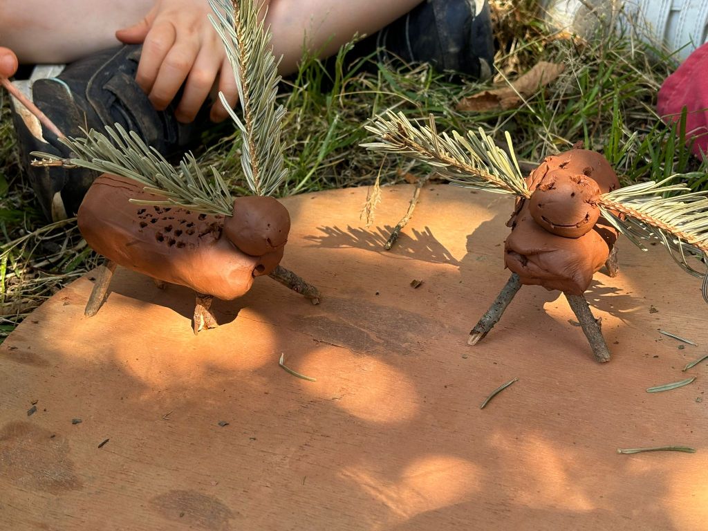 Les enfants se familiarisent avec la faune de la Préhistoire et reproduisent par modelage un animal en argile en l’agrémentant de brindilles qu’ils sont allés eux-mêmes ramasser.