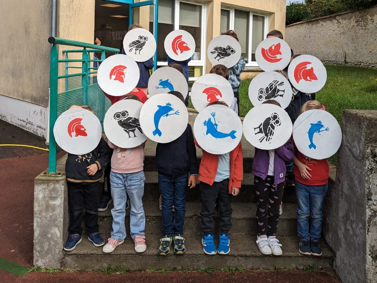 Après une discussion autour de l’origine de nos jeux olympiques, les enfants sont amenés à fabriquer un bouclier grec afin de participer à une épreuve des Jeux Olympiques antiques : la course en armes.