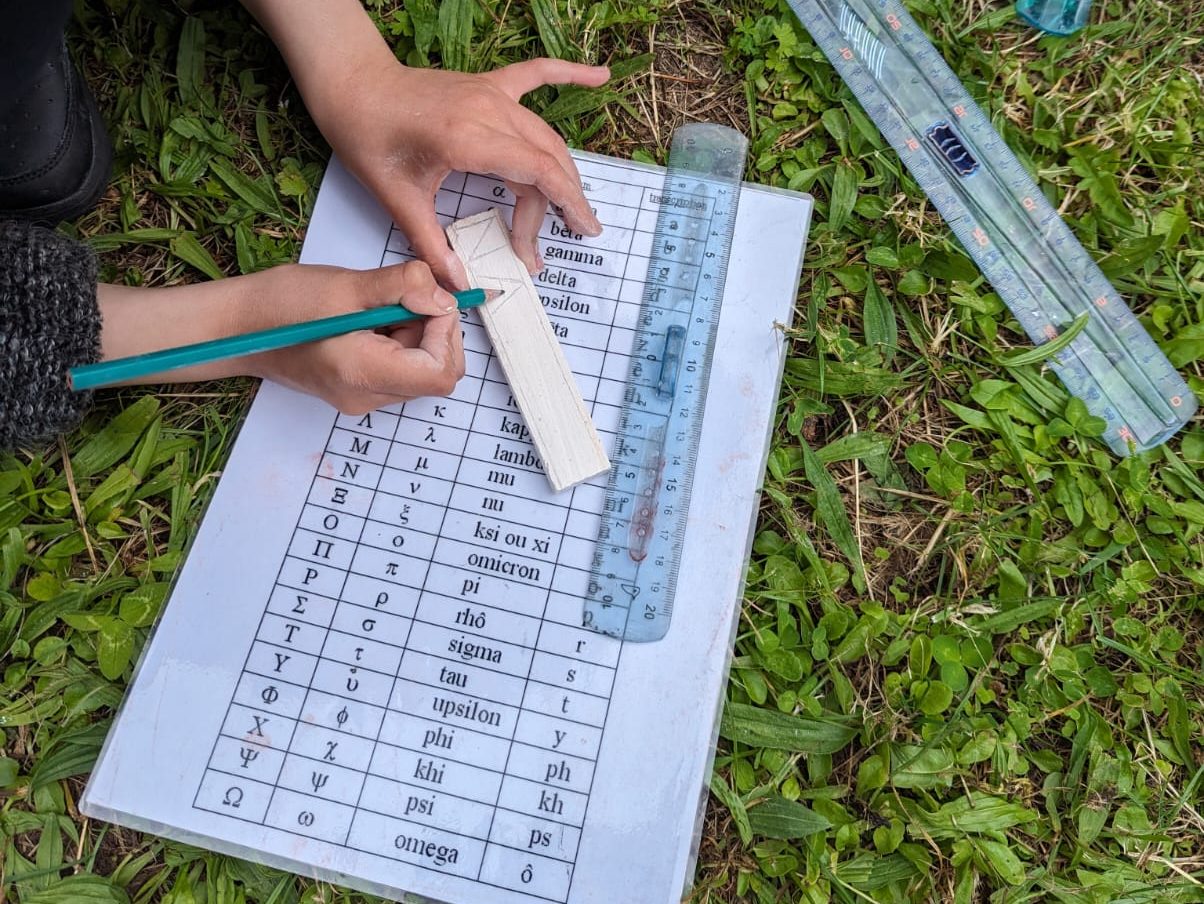 Après une introduction à la Grèce Antique, les enfants remontent aux origines de l’alphabet Athénien qui s’imposera dans toute la Grèce et influencera grandement notre alphabet latin. Ensuite, les enfants s’initient à la gravure pour écrire leur prénom en grec sur un morceau de plâtre qu’ils ramèneront chez eux.
